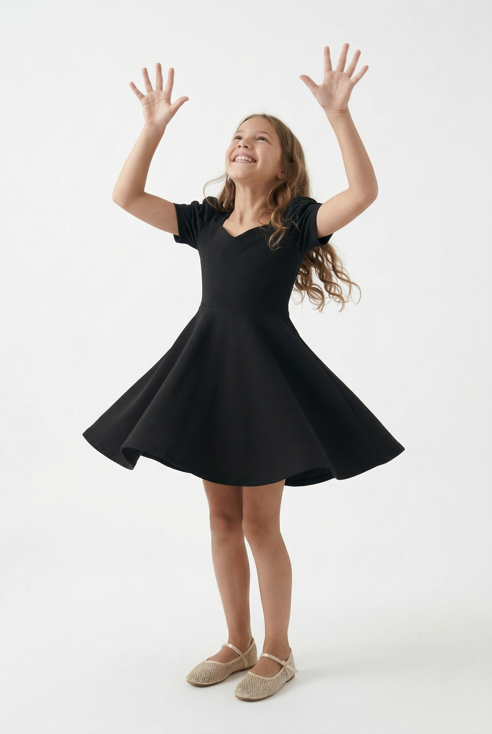 Šaty Vesper jsou ideální volbou pro školní besídky, dětské plesy, rodinné oslavy i slavnostní příležitosti. Krátké rukávy a pohodlný střih bez zapínání umožňují snadné oblékání. Černá barva je praktická a nadčasová, snadno se kombinuje s doplňky v jakékoli barvě.