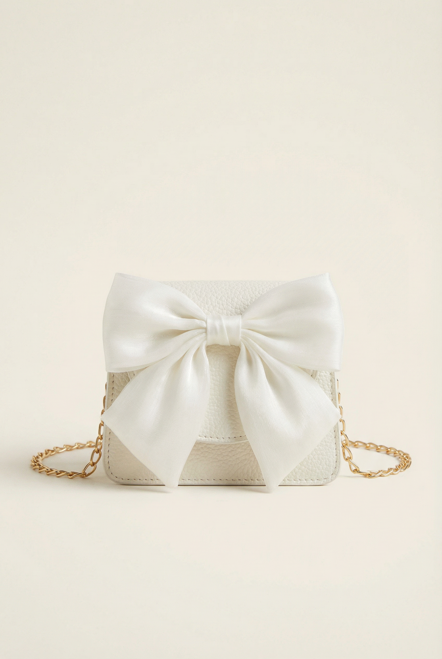 Elegantní bílá kabelka pro dívky s roztomilou mašlí a zlatým řetízkem